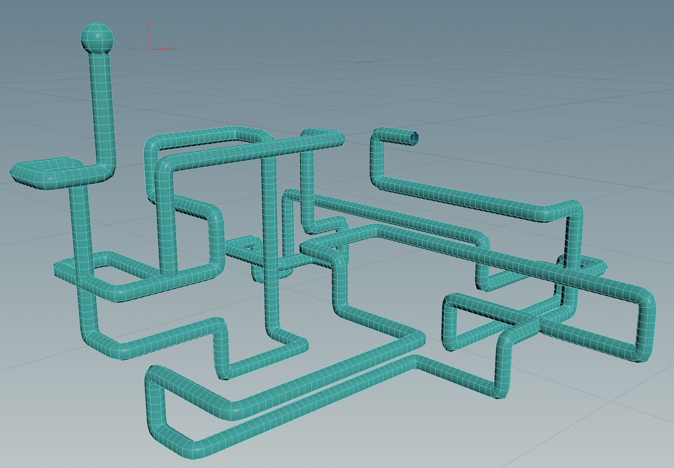 For this project, I set out to recreate the classic Windows 3D pipes screensaver that I used to watch for hours at my Grandma's house as a kid. Watching footage of the gorgeous old screensaver, I made a list of rules the pipes appear to follow, such as: